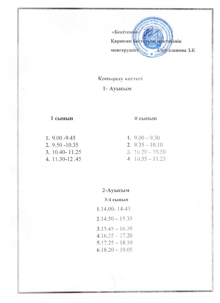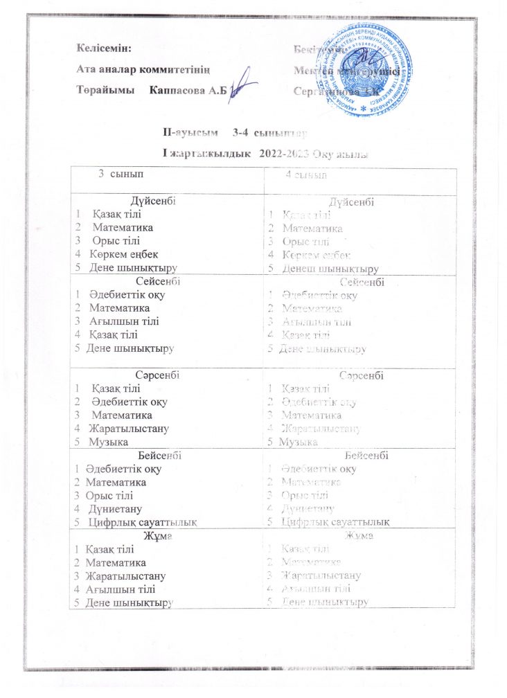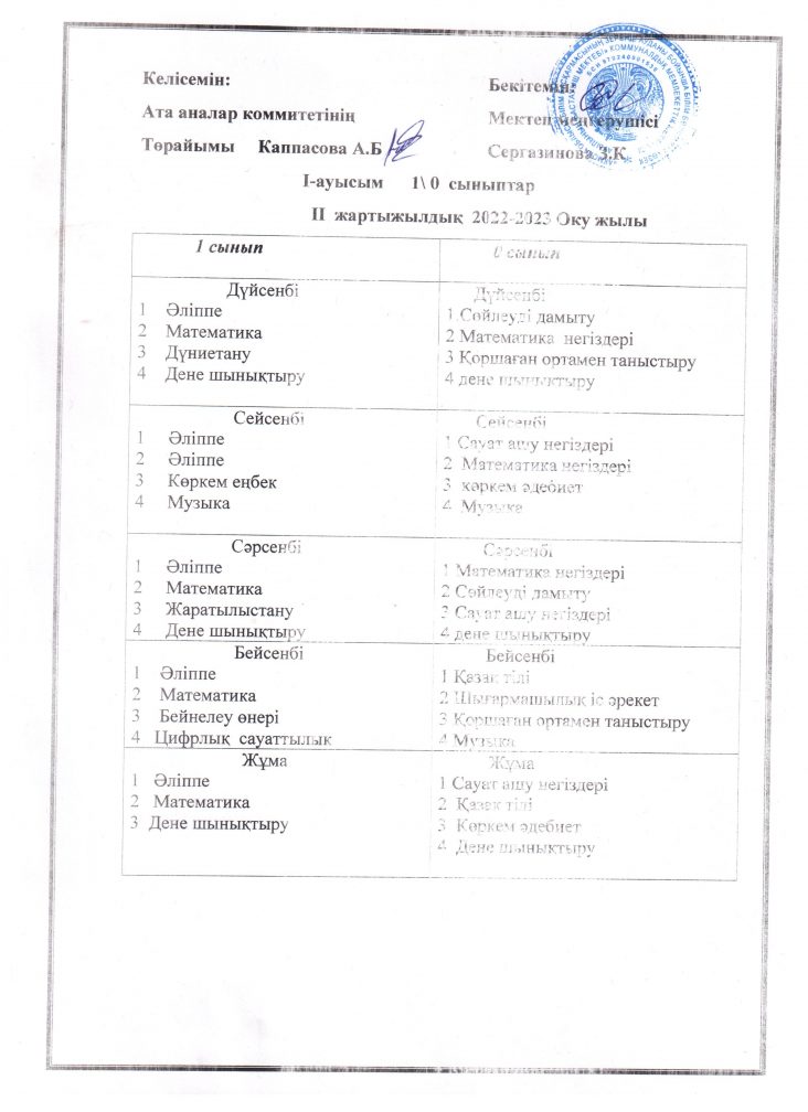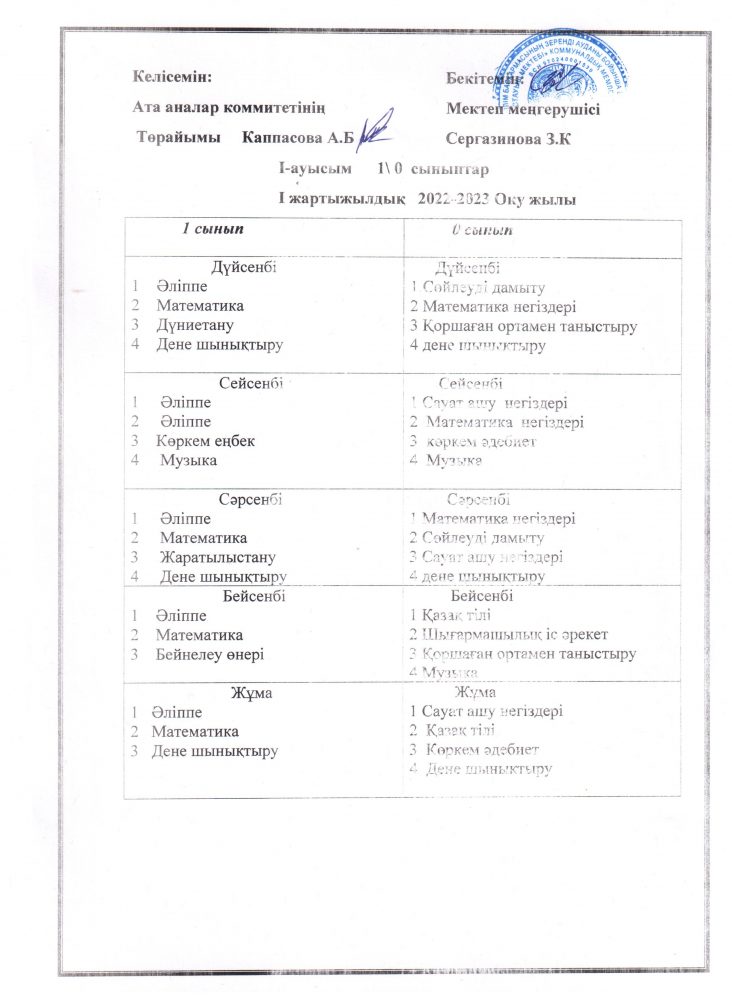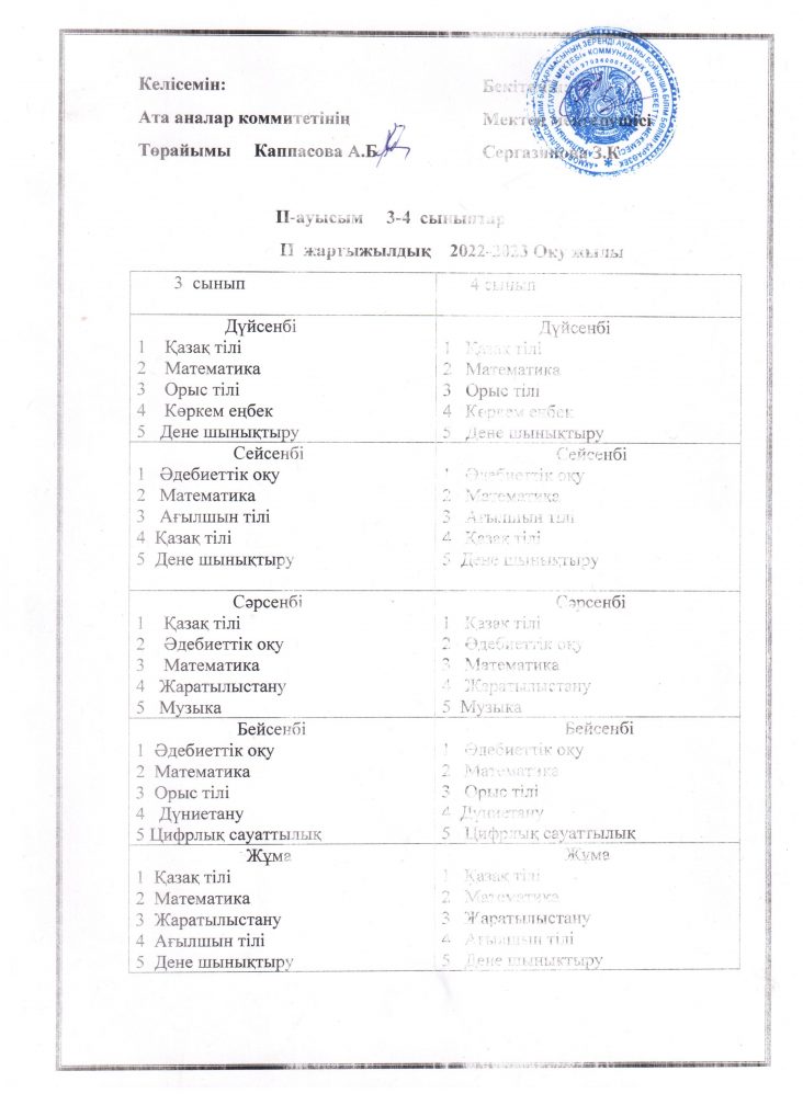 Сабақ кестесі