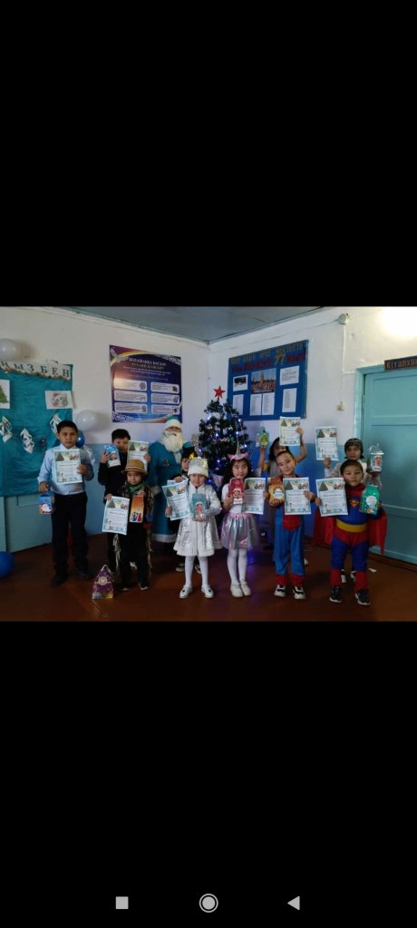 Мектебімізде жаңа жылға шағын ертеңгілік өткіздік. Аяз-атамыз келип, балаларға сый сыяпат берді, ал балаларымыз аяз атаға өз өңерлерін паш етті. Жаңа жылымыз құтты болсын.Еліміз тыныш, жұртымыз аман болсын.